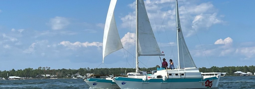 Now of course, ‘small boat’ is a relative term. I’m referencing boats in the 30’ – 45’ range. Huge to some people, barely adequate for others. For me this is a size range within which I can live comfortably, especially as it’s a Wharram catamaran. Big open decks, and with few concessions, they’re very simple. My main berth, in the Starboard hull where I sleep, is somewhere between a double and queen size bed. The main cooking galley in the Port hull is a reasonably sized “U” shape with a small 12 volt freezer and a two burner camping stove. The rest is for storage and workshop type areas. Upstairs on deck it’s all open, kind of like living on a big back porch.